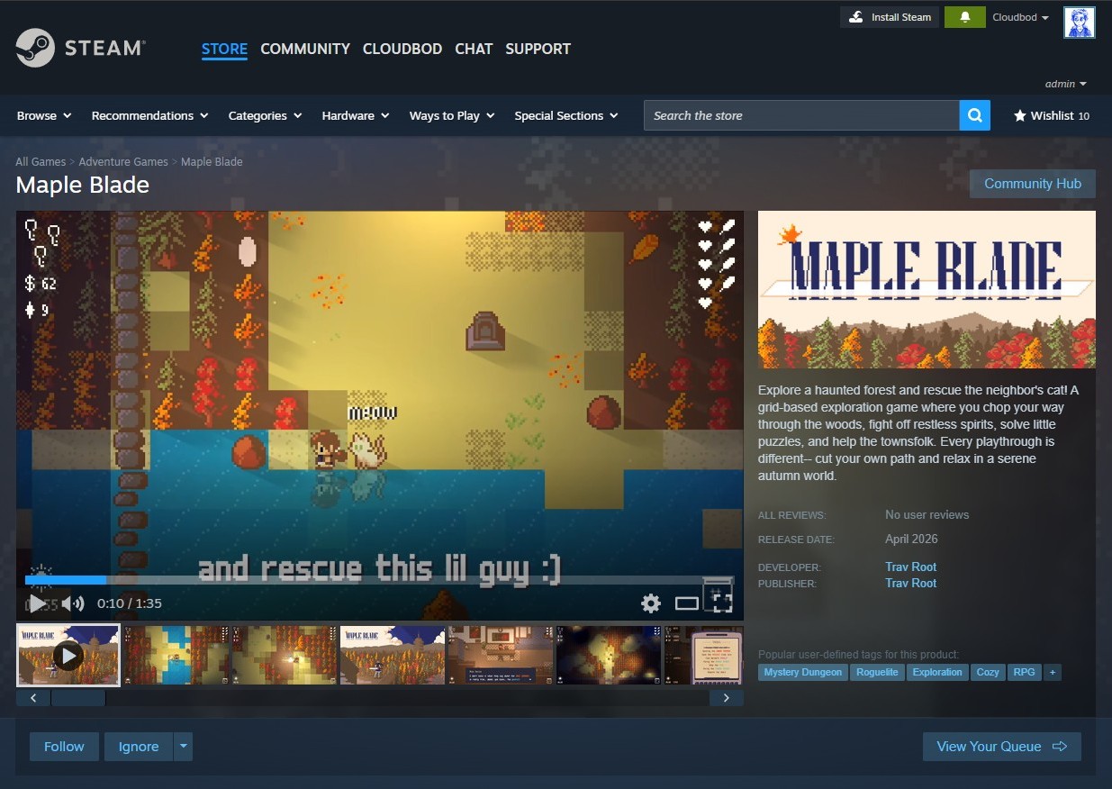 After several weeks of dev licenses and approvals, the Steam store page for Maple Blade is finally up!!